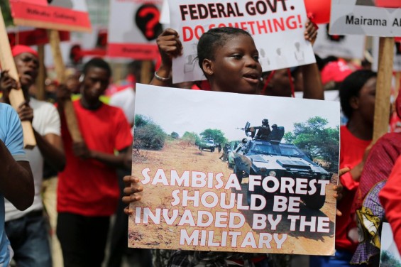 The Sambisa Forest is about the size of West Virginia.. It is the last refuge of the ostrich in Nigeria. Somewhere in there many believe are 300 kidnapped girls. On the other side of the African Continent, the Samburu in Kenya is the refuge of the Grevy’s Zebra, the reticulated giraffe and the black rhino. These places are the refuge of characters that crawl around in our nightmares. Boko Haram, El Shabab, Ansura, all of whom take refuge in areas like this and raise havoc. We heard about Al Shabab kidnapping entire villages a few years ago on a Mary Okeyo trip. In fact we traveled through a village that seemed to have no residents and when we asked about it a few hours later and further in the mountains a head man told us that it could have been taken by these terrorists. Boko Haram has been kidnapping and terrorizing for years, They have been known to burn young boys alive in their schools rather than kidnap them. We don’t hear about that over here because we have a Federal Government that never declared them to be terrorists because they “didn’t want them to get publicity”. Interesting what passes for publicity when one becomes a member of and a leader in the Federal Government. This is the Daily Beasts take on the Federal Government and their reaction. The “responsible leader” at the time was Hilary Clinton.