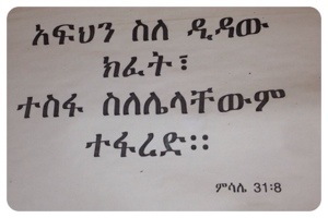 I believe that this is Amharic. It may be Ge’ez a localized dialect but I’m not sure. Amharic is a Semitic language spoken in Ethiopia. It is the second-most spoken Semitic language in the world, after Arabic, This is a sign on the wall of a school for special needs children. The school is in Mekanissa Ethiopia and they serve over 300 children. I was supposed to be visiting this school this last week. I was invited to go with the President of Synod to Kenya, Ghana, Ethiopia, Madagascar and Germany. I obviously couldn’t go but wish I could have. I have been fighting a strange head cold, sinus issue for a while now so I wouldn’t have been much of a traveler anyway. I have however been following “my trip” on the Blog site “Witness, Mercy and Life Together”. You can go there by clicking on the right hand side of this blog on “Witness, Mercy and Life Together”. This is from that blog.