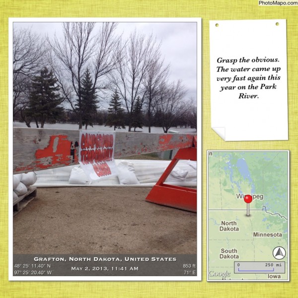 I felt that whoever put up the sign that said that the campground was closed had a great grasp of the obvious. Somethings are pretty hard not to know. When the water came up this fast on the Park River in Grafton the campground was one of the first things that were inundated. Unless you want to camp in a boat most people should be able to know that the campground is closed but..