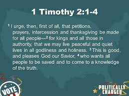 1First of all, then, I urge that petitions, prayers, intercessions, and thanksgiving be offered on behalf of all men 2for kings and all those in authority, so that we may lead tranquil and quiet lives in all godliness and dignity.…
