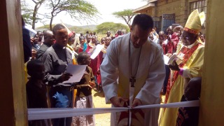 Rev. Shauen Trump is cutting the ribbon – he is the head of the East African Region for the Office of International Mission.