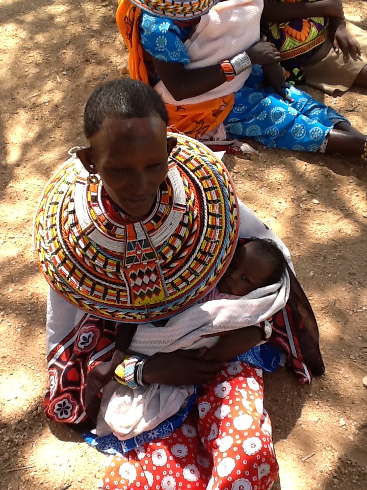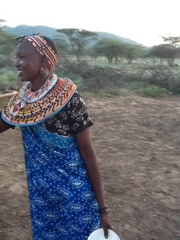The Samburu peoples are cousins to the Maasai.  The only difference in their languages is that the Samburu have a different pronounciation of plural words.  Their dress is very much alike except the Maasai have a red basic color and the Samburu that I met have a yellow and blue basic color set, and even when working the clothing is quite stunning for the women.  I am told that Samburu have red colors too but I didn’t see any.  The men, unless they are “moran” or warriors are pretty plain.  But if you see a moran out in the bush you know you are facing a pretty formidable character.  They carry a beautiful spear, the “rungu” or club, but what I noticed was different from the Maasai was the knife.  It looks soemthing like a Bowie” knife and is carried in a decorative sheath that hangs around the small of the back.  I hope one of our group got a picture of a moran.