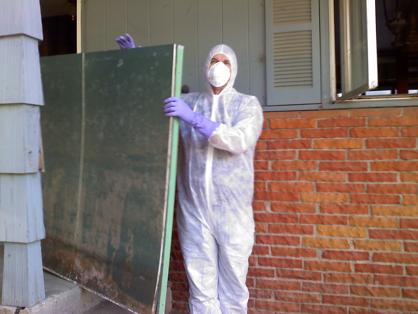 He’s hardly recognizable, but this is Pastor Craig Fenske of Immanuel, Grand Forks, behind that mask,” Tuesday, he and three of his parishioners: Gary Bethke, Adam Drake and Ray Steffen, drove to Minot to spend the rest of the week working in flood recovery.