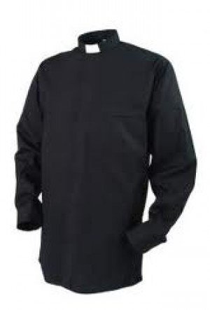I have issues with the clergy shirt. I remember the ubsurdity of one of my prof’s at Seminary who always wore one and could be seen on autumn afternoons cleaning the gutters of his dwelling while so attired. The white salt stains on the black background were particularly appealing since they showed the obvious difficulty of the labor in which he had entered.