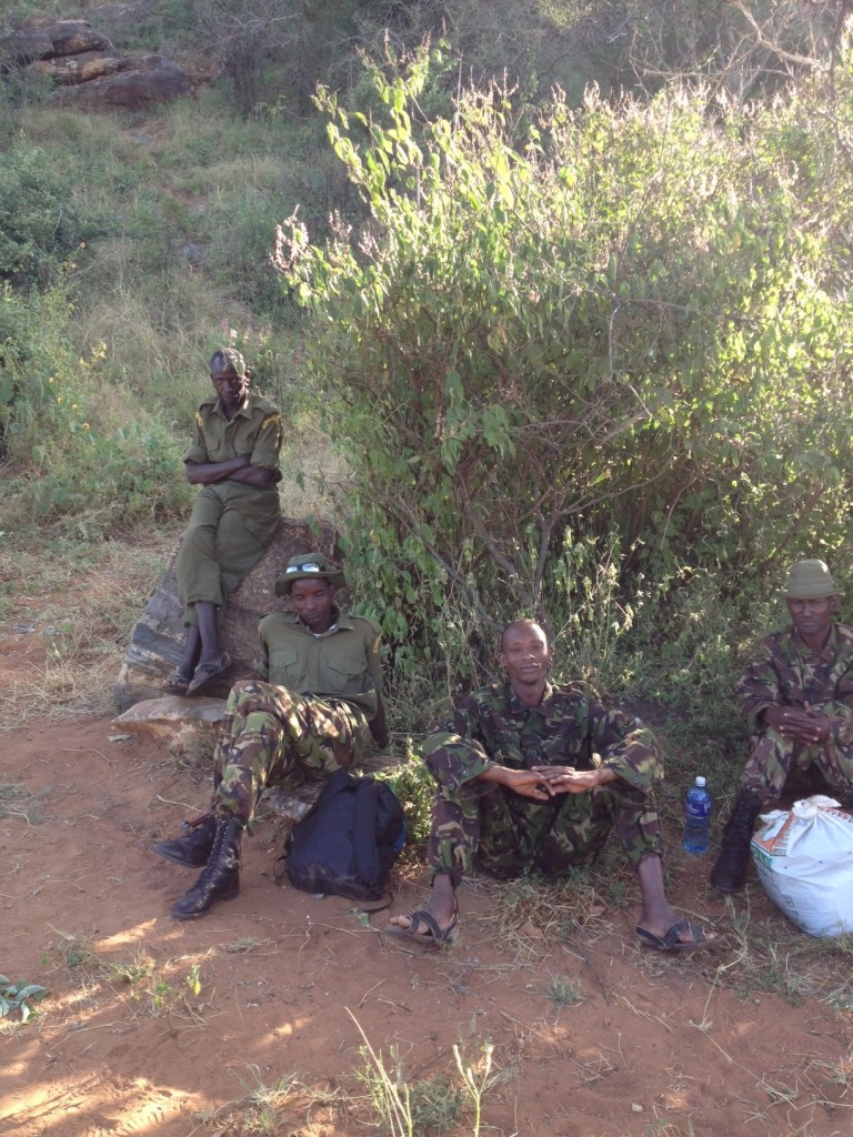 We came across these guys in the Samburu and found that they were part of a new “conservancy”.  They wander around in the bush with hi powered weapons trying to keep the Somali’s and the Al Shabab terrorists from killing the elephants and anything else that moves and might have some value.  The camouflage was what interested me because I didn’t see these guys until we were right on them.  The only reason I saw them at all was the white Nakumatt bag.  These things are ubiquitous.  Nakumatt is like our Wall Mart.  The plastic bags are used for everything from lining the roofs of the huts to tying sticks together to make a travois.