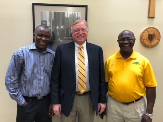 There it was midafternoon. About the same time I received a picture from Rev. Don Fondow of him and partners in the Gospel from Liberia visiting the Minnesota North District Offices.