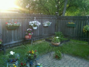 As short as the summers are up here in the North Country, they can be glorious. If you like gardens and flowers you have to be quick and careful. Quick to get things planted but careful not to plant too soon because we can have a frost right up until Memorial Day. After one of the harder winters I can remember we have had a particularly wet spring (see some of the earlier posts). My wife loves to plant flowers in pots and decorate our back yard, but she hasn’t been able to do that this year.