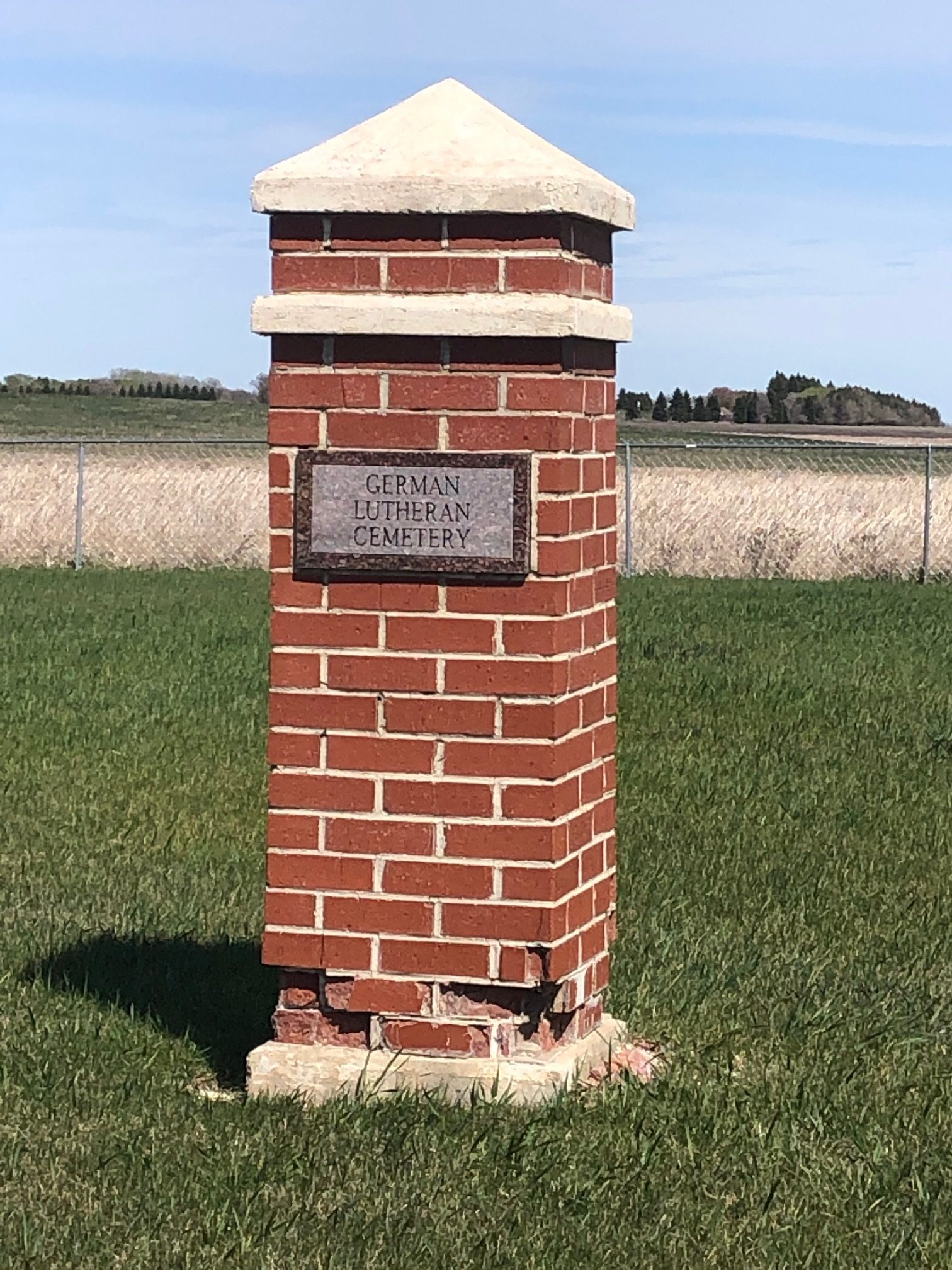 Last week was a busy time. There were two funerals and visits to the cemetary. Then there were several burials from the winter. I talked to some of the funeral directors and their staff and it is a very unusual time for them as they have burials backed up through out the summer. It is a part of life up here in the north country that winter is great disrupter. It may seem peaceful and beautiful when things are nestled beneath a blanket of snow, but winter is the disrupter. Anyway as I was coming back from one burial way out in the country I saw an obelisk across the road and drove over to check it out. There was a small plot of fenced in grass and a few graves back in the corner of the lot but there was no identifier except this sign. Very simple. “German Lutheran Cemetary”. There is no identifier of a church that might have been there. There is something somber about a cemetery that seems to be disconnected from a church or from what was a church ground at one time. Usually there is some marking that a burial ground was a part of a worshipping community at one time. There is a fascinating story behind many of these places but sadly we have no way of knowing what they are.