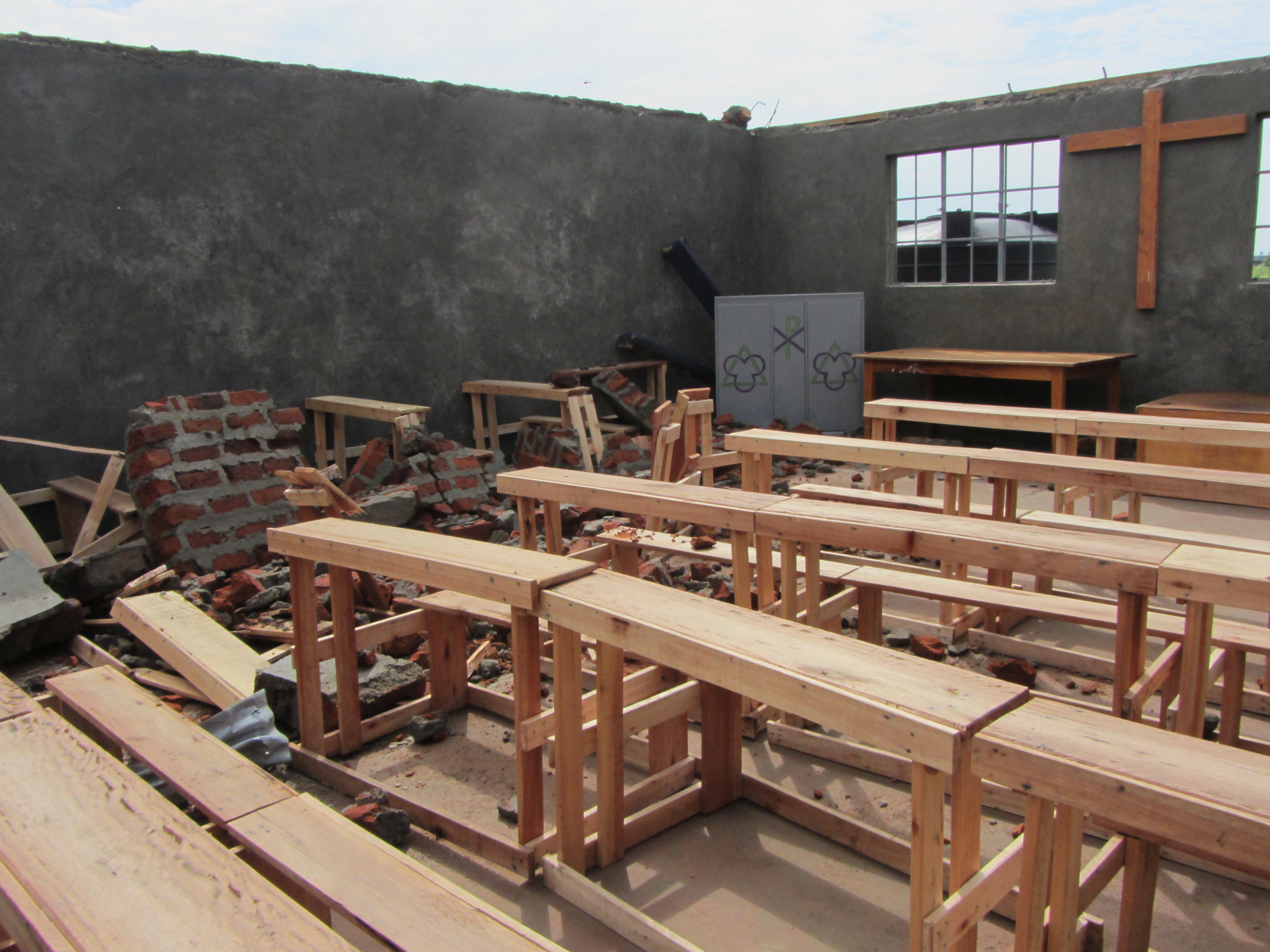 Evidently a severe thunderstorm hit Kisumu and the Project 24 rescue center that was supposed to be up and running 6 months ago but has had some issues that have slowed it down – like a water well that didn’t produce water and some other problems. Well it was hit by what I think was a tornado. I guess at the Equator it would be called a cyclone.