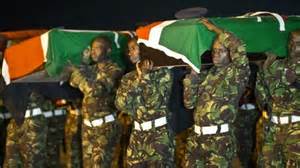 Yesterday I showed you a picture of the Kenyan flag being raised at the school at Othoro. Here is a picture of the Kenyan flag on the caskets of soldiers killed by El Shabab. I wrote about the dirty little war that is being fought in East Africa when we came back from Wamba. Kenyans are reacting to attacks inside their country aimed at Christians.