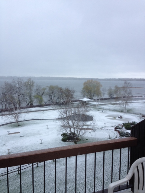 View of Lake Darling on Convention Morning The Minnesota North Convention Started on Monday at Arrowwood Resort on the beautiful shores of lake Darling near Alexandria Minnesota.  I went down on Sunday night to deliver and set up a display for Project 24 and bring along the movie that Stephanie Erlandson and the team had worked so hard on.  It was like driving through a hurricane the whole way down.  When I got there a gentleman from Concordia Publishing House was setting up his display and I said that if the temperature dropped another four degrees we would have some troubles.  It did and we did.  This is the view of Lake Darling I saw in the morning.  I chipped my vehicle out of the ice and finished my display.