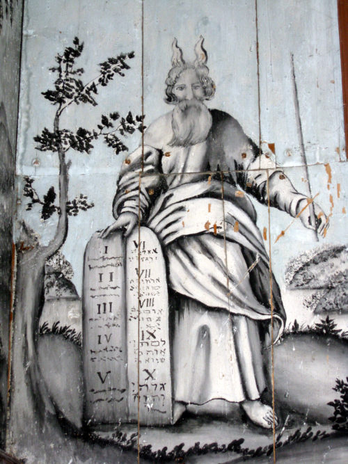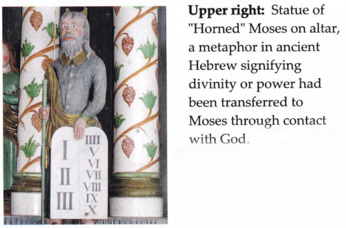 My friend Kathlyn Rath sent me this picture after the other blogs about horns. This is from a church in Norway where her mothers grandparents were baptized. Here is another picture and I like the clothes Moses is wearing in this one.