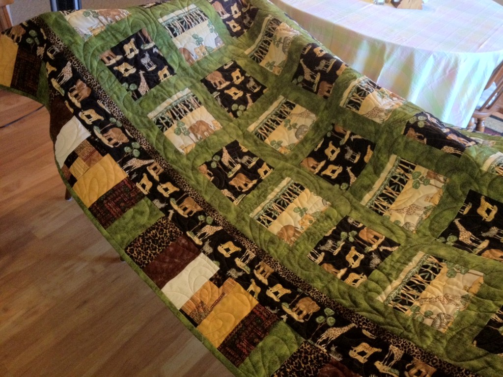 It is hard to get a picture of a quilt at 6;30 in the morning while your trying to have coffee. This is the best I can do. It is also hard to spell ‘quilt’. I kept writing ‘guilt’ and that didn’t look right but ‘quilt’ doesn’t look right either.