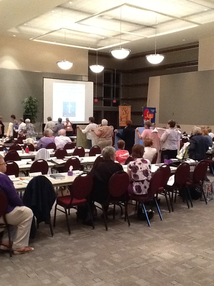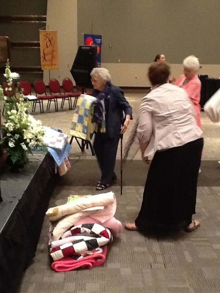 The LWML of the North Dakota District met a the Alerus center in Grand Forks last week. It was a great convention. A gift of $2400 was received for the Mary Okeyo Scholarship fund. A good time was had by all. These are pictures of the Quilt Processional. I think if I were the ladies, as cold as it was in that building, I would have skipped the processional, wrapped up in the quilt and gave it for the ingathering later. There will be more about these conventions later. Minnesota Norths was held at Breezy point and a good time was had by all. We need to take a few minutes and appreciate the work of the two outgoing Presidents. Sue Corwin of North Dakota and Cheryl Peterson of Minnesota North.