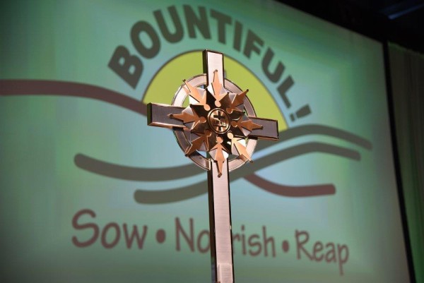 I finally received the picture of the front of the cross that stood on the dais at the LWML Convention. It is quite beautiful and my picture was from behind. You see the figures of women around the cross. The cross is our theology the Lutheran Confessors said because by it Christ reconciled the world to himself. The cross is our preaching although if you listen to much preaching today you would never know.