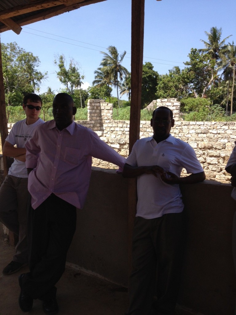 It is hard to get pictures to show the full site so here is a picture facing the opposite way from the first photo. Kyle Novak, Pastor Bakari and John Halake are in the cooking area and you can see an unfinished building in the back ground. That was part of the problem – trying to do too much at one time. Anyway the children should be there now and work can start on phase two some other time.